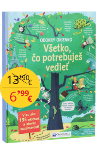 Knižka „Všetko čo potrebuejš vedieť" s otváracími okienkami prospeje každému, kto si chce počas školy zapamätať veci, ktorými dokáže ohúriť svojich spolužiakov či rodičov. Vedeli ste, že v rovnakom čase behali po Zemi dinosaury a aj mravce? Že prvý let lietadla s dvoma krídlami trval 12 sekúnd? 135 odklápacích okienok skrýva zaujímavé a častokrát aj zábavné informácie.