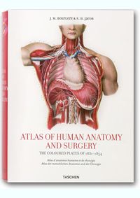 We owe a great debt to Jean Marc Bourgery (1797–1849) for his Atlas of Anatomy, which was not only a massive event in medical history, but also remains one of the most comprehensive and beautifully illustrated anatomical treatises ever published in any language. In 1830, having received his doctorate in medicine three years prior, Bourgery began work on his magnificent atlas in cooperation with illustrator Nicolas Henri Jacob (1782–1871). The first volumes were published the following year, but completion of the treatise required nearly two decades of dedication.The four parts of Bourgery's treatise cover descriptive anatomy, surgical anatomy and techniques, general anatomy and embryology, and microscopic anatomy. Jacob's spectacular hand-colored, life-size lithographs are remarkable for their clarity, color, and aesthetic appeal, reflecting a combination of direct laboratory observation and illustrative research, the images are to this day unsurpassed in anatomical illustration.