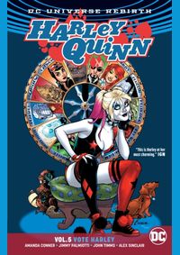 Time to hit the polls, New York City. Harley's on the ballot in Harley Quinn Vol. 5: Vote Harley! If you thought politics were a dirty business already, wait till you get a load of Quinn! Ever since Harley Quinn relocated from Gotham City to the Big Apple, corrupt Mayor DePerto has been a thorn in her side--and a knife in her back, and a bullet in the face, and a mallet to the noggin.But our favorite reformed super-villainness isn't taking this lying down. She's taking her battle to the ballot box and running for Mayor of New York City herself! But if Harley wants to really rock the vote, it won't be easy. She'll have to call in favors from friends and foes alike, including some of the nastiest bad guys in Batman's rogues gallery.And from her gal-pal Poison Ivy to her old frenemy the Penguin, everyone's taking sides. It all comes down to the craziest Election Day in city history. Will New Yorkers have to call Harley ",Hizzonner",? Or will the power-hungry mayor make her and her supporters pay? Find out in Harley Quinn Vol.5: Vote Harley--an action-packed tale of democracy in action from Amanda Conner, Jimmy Palmiotti and a national committee of talented artists, concluding the fan-favorite run! Collects Harley Quinn #28-34.
