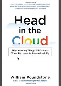 The real-world value of knowledge in the mobile-device age. More people know who Khloe Kardashian is than who Rene Descartes was. Most can't find Delaware on a map, correctly spell the word occurrence, or name the largest ocean on the planet. But how important is it to fill our heads with facts? A few keystrokes can summon almost any information in seconds. Why should we bother learning facts at all? Bestselling author William Poundstone confronts that timely question in HEAD IN THE CLOUD. He shows that many areas of knowledge correlate with the quality of our lives--wealth, health, and happiness--and even with politics and behavior. Combining Big Data survey techniques with eye-opening anecdotes, Poundstone examines what Americans know (and don't know) on topics ranging from quantum physics to pop culture. HEAD IN THE CLOUD asks why we're okay with spelling errors on menus but not on resumes, why Fox News viewers don't know which party controls Congress, why people who know ",trivia", make more money than those who don't, how individuals can navigate clickbait and media spin to stay informed about what really matters. Hilarious, humbling, and wildly entertaining, HEAD IN THE CLOUD is a must-read for anyone who doesn't know everything.