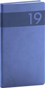 Kapesní diář Aprint 2019 v modré barvě. Klasika i elegance, nejžádanější povrch, na který lze snadno razit i tisknout firemní loga s jemnou strukturou.<br/><br/>