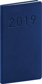 Kapesní diář má elegantní modrý povrch imitující kůži.<br/><br/>