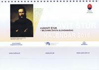 Malý stolový kalendár na rok 2016 Ľudovít Štúr – milovník života slovenského obsahuje štúrovské slovanské mená, pripomienky významných udalostí z našich národných dejín a ťažiskových dvadsaťsedem sprievodných textov s ilustráciami. Tie približujú život a dielo Ľ. Štúra ako ho tradične poznáme v pozícii politika, jazykovedca, slavistu, novinára, básnika, atď., ale osvetľujú aj jeho menej známu vnútornú biografiu. Na základe nej charakterizujú Štúra ako syna, brata, priateľa a učiteľa, popisujú vlastnosti, záľuby, lásky a žiale tejto osobnosti, jednoducho predstavujú ju ako každého iného človeka z mäsa a kostí, a tak scivilňujú nášho génia cez prizmu poryvov a emócii jeho duše.